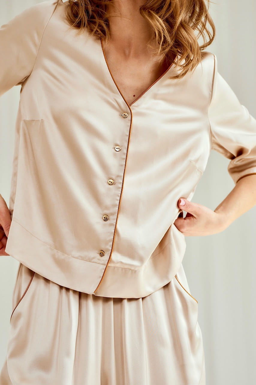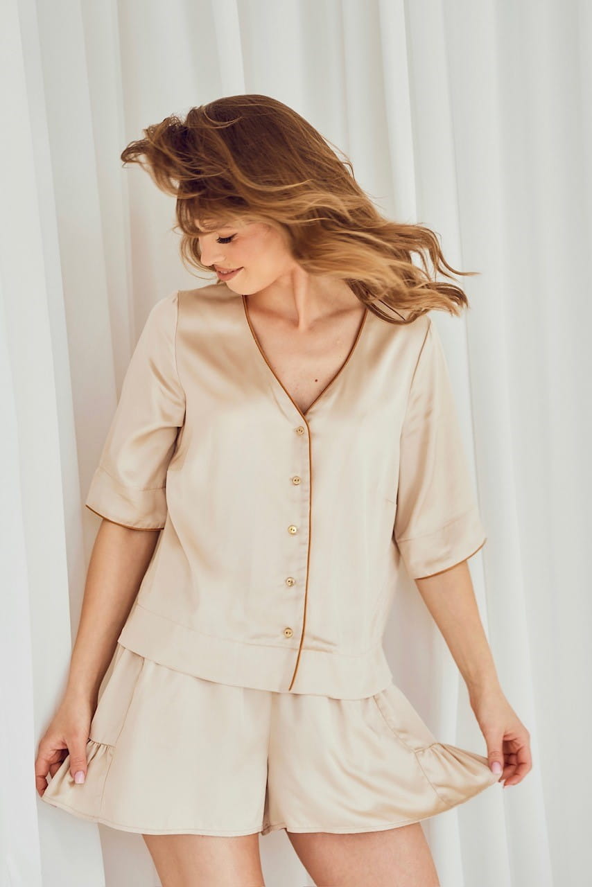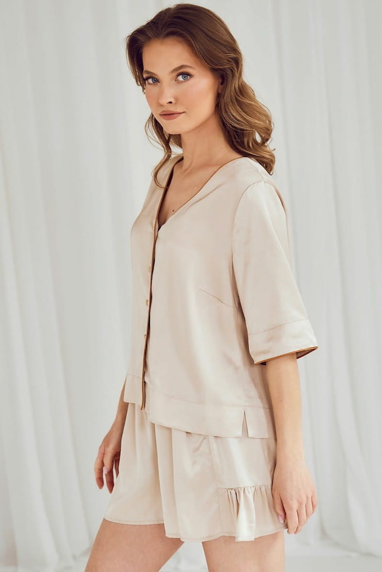 DOLCE NUDE Koszula i Szorty elegancka piżama damska z wiskozy satynowanej